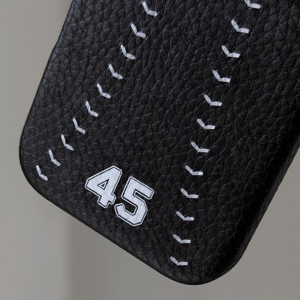 • iPhone16系列型號為人造皮革(耐磨2.0荔枝紋皮革),手感接近RMS小牛皮革,比真皮更耐磨。 • 客製化文字:文字白色、描邊黑色、外框白色